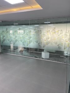 Customized engine-themed wall graphics designed as part of interior enhancements for industrial clients.