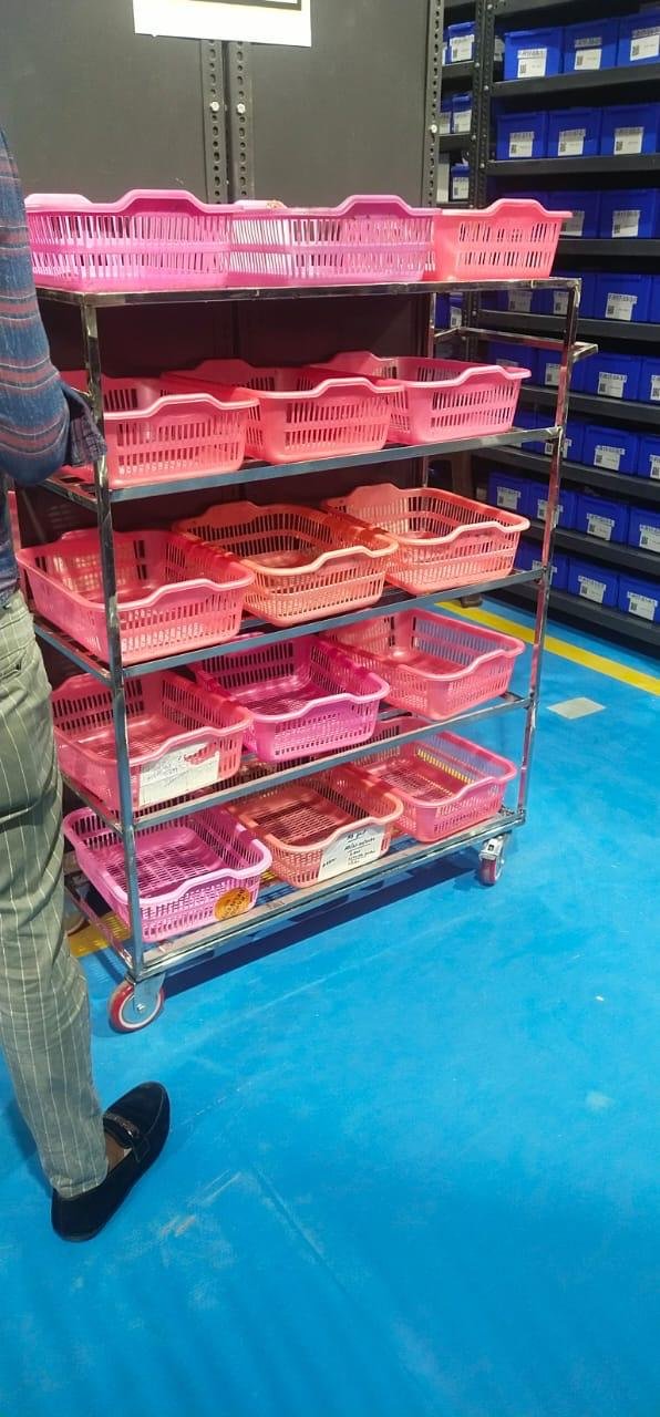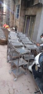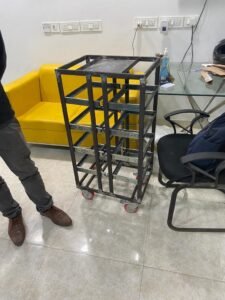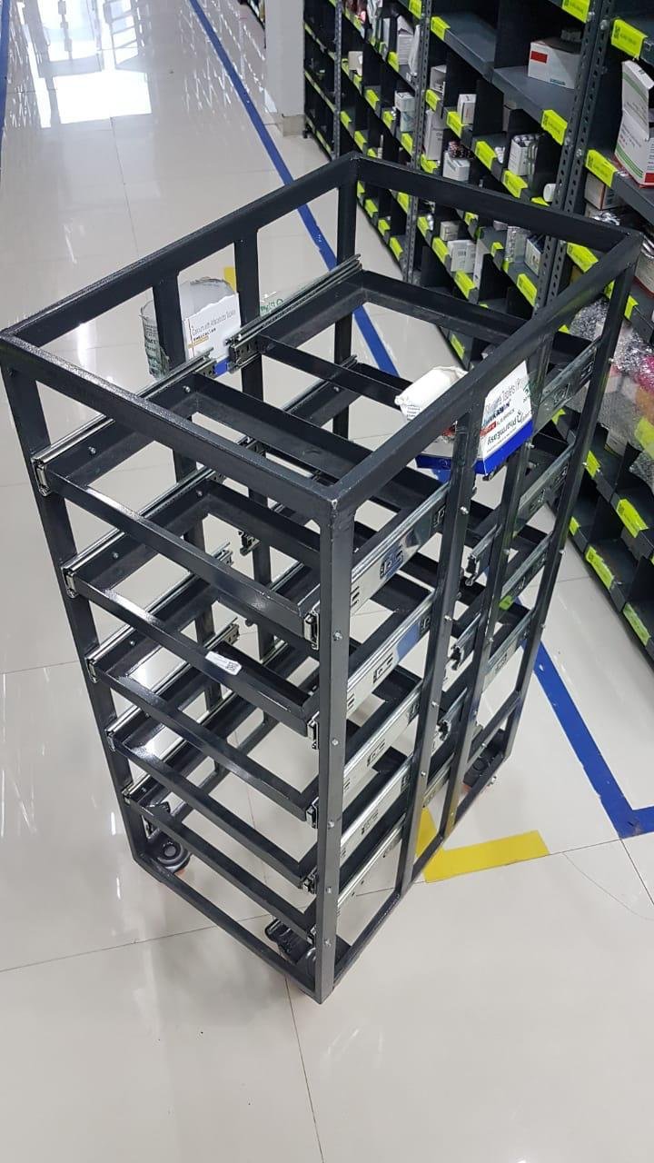 Designed and fabricated storage trolleys for chemist shops, warehouses, and healthcare logistics.